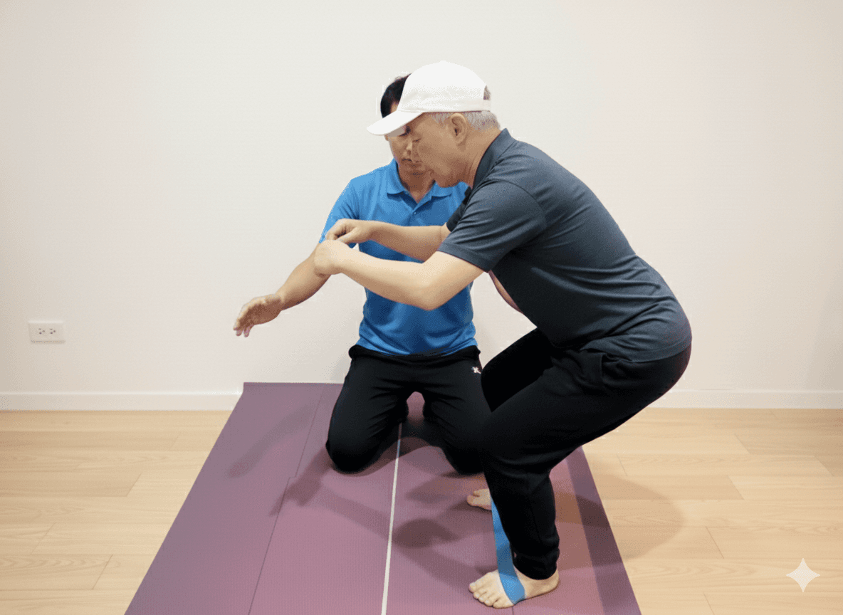 教練親自到府,觀察長輩在居家環境中的日常動作(起立坐下、走路姿態、彎腰拿物),找出導致代償疼痛的元兇。