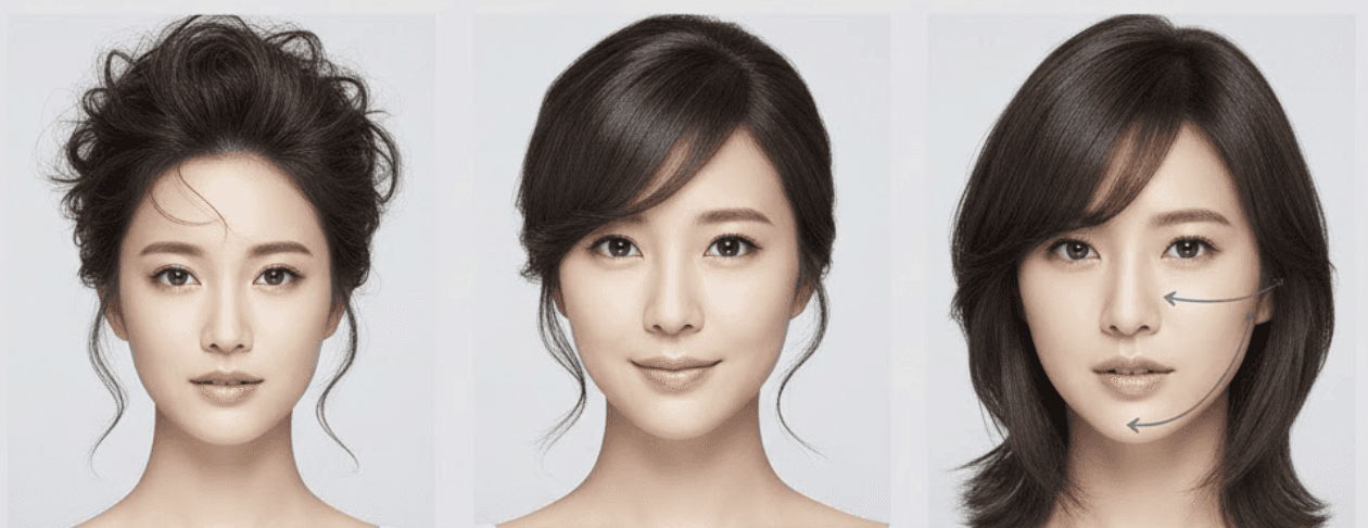 • 中分:傳達成熟、冷靜、具質感的高冷訊息。 • 偏分 (大旁分):更顯溫柔、親切、拉近距離感。 • 高中分:氣場極強,商務感較重。 如果你常被誤會「很高冷」,問題可能不在於你的態度,而是你的分線位置過於中正或嚴肅。 3. 臉部框線(Face Line):你的顏值框架與精緻度 髮際線與臉旁線條(如瀏海、鬢角)決定了你的顏值框架: • 決定你看起來胖或瘦。 • 決定你是柔和或冷冽。 • 決定你的五官是否清晰。 框線一旦錯誤,整個人看起來就會變「雜」,無法聚焦,顯得憔悴。