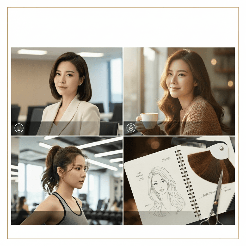 • 深髮:容易讓五官變深邃,但也可能顯得嚴肅、壓重整張臉。 • 淺髮:顯得有精神、輕盈,但過淺可能顯得輕浮或「搶掉」五官焦點。 • 棕髮:氣質最穩定、最日常,是安全牌。