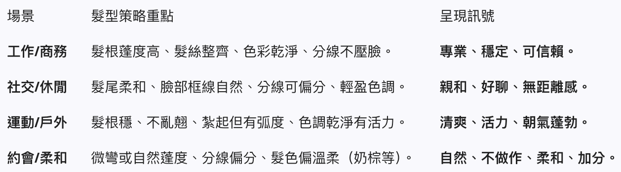 🎯 不同場合的「髮型策略」:呈現對的你