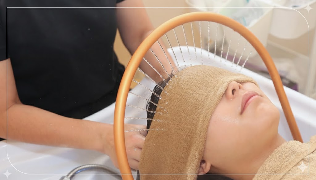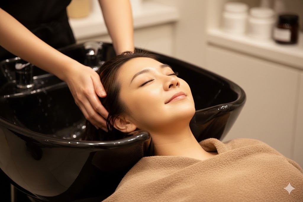 這是整個療程的重頭戲。躺在洗頭床上,感受芳療師用指腹輕柔而有節奏地按摩頭皮,從髮際線到耳後都照顧得無微不至。兩遍洗髮搭配水療,頭皮清爽透氣,壓力也跟著一點點釋放。