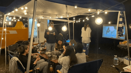 戶外電影投影設備:可安排投影布幕、藍芽喇叭與投影機,適合觀影、簡報或團體分享。