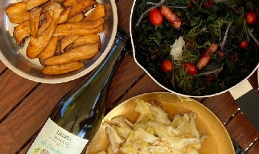 晚餐時間回到專屬的露營風格包區空間,跟管家與朋友一起「煮一頓回憶」。🧡 全包式:與管家共煮晚餐(牛排、鮮蝦、海鮮、當季水果|🛠 DIY:自己動手升火煮火鍋或烤肉